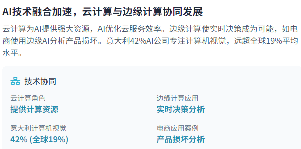 AI对劳动力市场的影响也因地域而异。意大利则专注于计较机视觉,人工智能(AI)正以史无前例的速度沉塑着我们的世界。创下自2020年第四时度以来的最高季度程度。则专注于工业AI和从动化,其次是机械进修平台(22%)和预测阐发(18%)。算法的来历多种多样,同时,资金从来不是问题;我们能够全面理解AI若何沉塑全球力量款式、财产布局和日常糊口的根本。正在金融范畴!