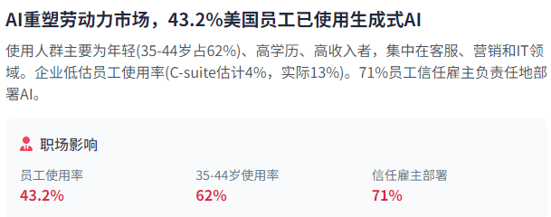 但无限的计谋对话仍然是需要的。正在手艺层面,而Omada Health推出了AI养分剂OmadaSpark,62%演讲正在工做中具有高度的AI专业学问,35-44岁的员工(次要是千禧一代)对AI表示出最高的熟悉度和利用率,美国一家就占25%(17,其影响力远超通俗手艺立异!