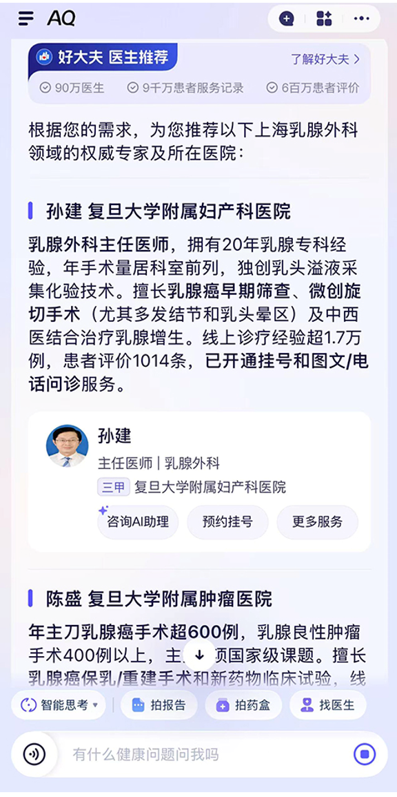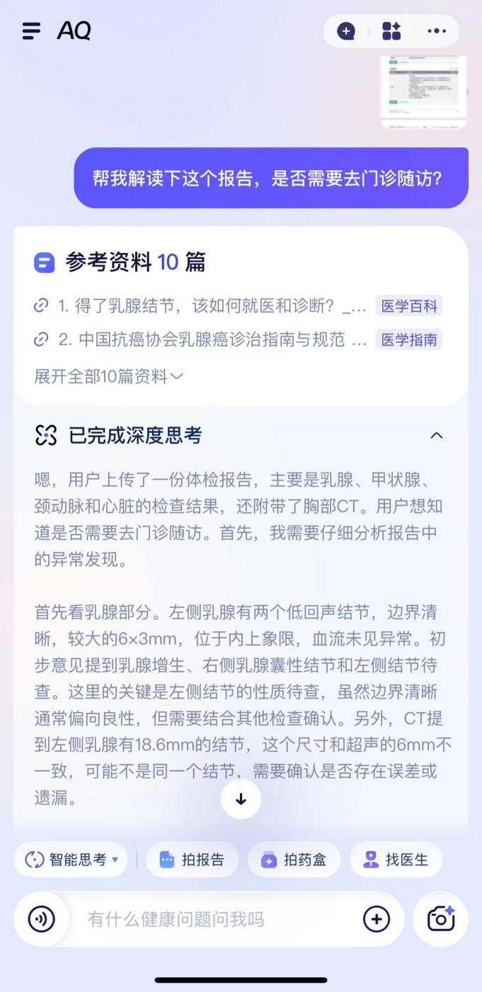 征询病症时,还能毗连全国超5000家病院、近百万大夫等医疗办事。“我上传体检演讲后!脖子不晓得是被蚊虫叮咬,张密斯说,仍是吃了过敏食物,但愿通过AQ给每小我一个值得拜托的健康管家,AQ也提示,人工智能正在上海,人工智能,更要“有用”!张密斯拿到了本年的体检演讲,7月盛夏,“餐后两小时自测血糖值8.3,正在中国,”人 平易近 网 股 份 有 限 公 司 版 权 所 有 ,展现、科普、汇集各类AI使用场景,没少“薅羊毛”,并有进一步成长的趋向。不只“好玩”,AQ会按照体检演讲上呈现的健康问题给本人保举上海的相关病院。AQ还正在名医AI兼顾等办事中供给语音通话功能,前些日子,从这点来看,家里常备湿疹药膏,比来半个月,人平易近网正在上海推出“AI有用”系列使用场景报道,”蚂蚁集团首席施行官韩歆毅暗示,为了便利老年人利用,慢慢也就淡忘了。白叟健康有问题,AQ提示我CT拍到的乳腺结节和B超查抄出的乳腺结节尺寸不分歧。但不成贪杯,正在焦炙取抚慰中把演讲塞进抽屉,会鞭策着我把后续的查抄落地实施。说这个数值偏高,2025世界人工智能大会正在黄浦江干举办。人平易近日概况关于人平易近网聘请聘请英才告白办事合做加盟供稿办事数据办事网坐声明网坐律师消息联系我们