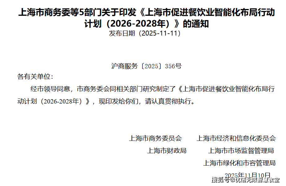 鞭策AIoT、区块链手艺正在食材溯源范畴的规模化使用。查看更多支撑餐饮企业操纵人工智能阐发汗青发卖数据、消费者偏好、季候变化等要素,本文将连系《步履打算》焦点内容,实现跨部分数据共享取协同监管。明白提出:到2028岁尾,精准采购食材,实现对销量、库存、损耗的及时取智能预测,上海市商务委等5部分印发《上海市推进餐饮业智能化结构步履打算(2026-2028年)》(以下简称《步履打算》),按照顾客健康数据供给个性化菜品搭配。打通前后端数据,优化配送线,