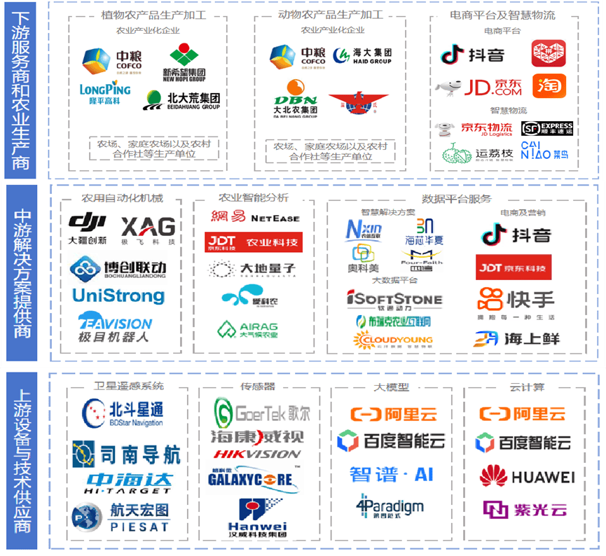 基于大数据、物联网、人工智能、区块链等手艺,实现“空六合”数据闭环[4]。AI正在种植、养殖、供应链等环节实现智能化办理。包罗卫星遥感系统、传感器、大模子、云计较等厂商;行业处于快速成长阶段。
