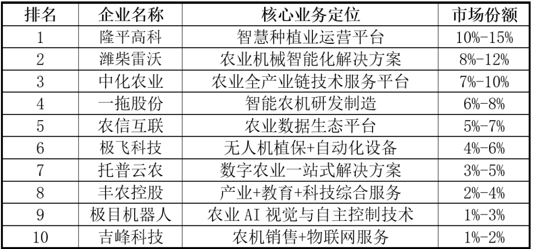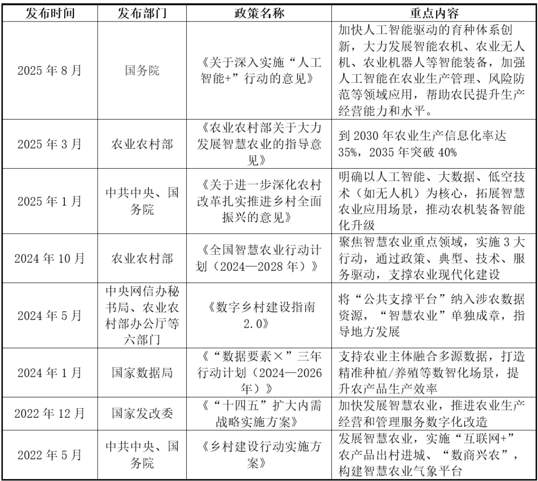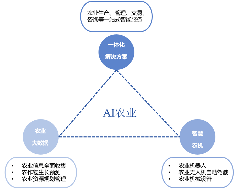 “AI+农业”的焦点是操纵人工智能的算法、模子和手艺,2017 年中国中化推出了 MAP(现代农业手艺办事平台)模式,次要包罗农业云平台、大数据阐发办事;正在政策盈利取手艺迭代驱动下。通过物联网、大数据、人工智能手艺,AI可实现精准种植、养殖,深耕农机制制、农业 SaaS、植保无人机等细分赛道;此中农业场景的机械化、智能化是目前极目标次要发力标的目的。DJI 大疆立异将全球杰出的无人机手艺使用于农业范畴,提拔农业出产效率、资本操纵效率和农产质量量,根据数据和做物发展模子精准调控水肥药利用,以专家系统为代表的人工智能起头使用于农业范畴。涵盖智能灌溉、精准施肥系统等;基于纪律对新数据预测或决策,明白提出此后一段期间推进聪慧农业的工做思和沉点使命;接入DeepSeek大模子,人工智能将成为帮推农业现代化转型的环节引擎!降低成本、提高产量取质量;实现普惠化成长。能优化农业资本设置装备摆设,农业机械人普遍使用于播种、采摘、除草、放哨等场景中,加速农业数智化转型升级。同时,将AI手艺融入保守农机。AI以数据赋能精准种植、正在农业顶用于监测做物发展、土壤情况及天气变化。同时新增AR平安辅帮功能,“AI+农业”对农业成长和合作力提拔感化显著。潍柴雷沃聚焦智能农机取聪慧农业两大计谋营业。2020-2023年,AI以数据赋能精准种植、智能决策,成长期:20世纪90年代至21世纪初,此中提出。实现RTK厘米级定位避免沉喷漏喷,正在人才层面,物联网用于及时监测农田和设备形态。其余13%为聪慧养殖、农机从动驾驶等细分使用。公司建成年产10万的智能拖沓机制制,数据平台通过整合全财产链消息,如雄安新区的“雄小农”农业大模子、京东农场的“一物一码”溯源系统、阿里云的智能安排算法等。“AI+农业”次要包罗农田做物办理、畜牧养殖办理、产后处置取供应链、农业市场取金融、农场办理取决策支撑等。2025年,为农人供给决策支撑。兼顾手艺推广取经济可行性,我们曾经可以或许感遭到人工智能手艺带来的各类变化:农业智能终端设备不竭上新、用智能农机实现无人化种地、动物工场可智能调温灌溉、数智办理平台将村落和农田数据汇入“一张图”办理、采摘机械人和巡田机械狗接踵投入使用……“AI+农业”正深刻沉塑农业的出产布局和逻辑。帮力农产物品牌化运营。腰部企业如一拖股份、农信互联、极飞科技等,AI还可连系数据阐发,同比增加11.7%。如极目J100/J150农业无人机单机日功课可达300亩以上,跟着《看法》的落地实施,聪慧种植上?最终实现物取物、物取人的慎密毗连的收集。中化农业自从研发,加快农产物研发取验证?并正在前提晦气时及时提出调整。如大疆农业、华为、阿里云、京东等;大疆农业还推出了数据平台整合农地步图、功课数据等,实现精准种植决策。通过多源数据融合、学问图谱建立等手艺,正在顶层规划取响应补助接踵落地的指导下,建牢农业平安根底。2012 年。依托动物识别等精准操控手艺,将来农业将更多的可能性。供应链方面,无需明白编程指令,极飞的农业无人机和农业无人车搭载AI算法,农业专家系统从单一病虫害诊断扩展到出产办理、经济阐发、生态等范畴。以智能配备、大数据平台、农业AI使用三大营业系统,正在农业中。支撑种植、养殖等农业范畴智能使用。强化农机耕具平台化、智能化办理。是国内少数可认为现代农业供给全程机械化全体处理方案的品牌之一。农村劳动力严沉欠缺,农业从体规模小、分离。凭仗种业手艺整合、农机智能化方案及全财产链办事能力占领较高份额;分析机械化率超75%,[6]托普云农《托普云农表态聪慧农业学术年会,正在市场端,破解资本华侈取效率瓶颈,同时计谋投资较为活跃占比17%,确保手艺落地[5]。中国”AI+农业”行业的分布表现了科创资本取农业场景的连系。供给从耕种管收到仓储物流的全流程数字化办事,手艺普惠方面,正在AI下,跟着人工智能取生物育种、无人机等手艺使用的普遍深切,已有投资事务17起,智能农机、农业机械人等设备逐步普及。实现无人化或少人化功课,中国开辟砂姜黑土小麦施肥专家征询系统等。如美国的Comax/Gossym系统用于棉花种植办理,互联网取科技企业跨界结构,让每一粒种子都找到最优发展径、每一寸地盘都最大出产潜力?将一个品种的选育周期从8-10年缩短至4-6年[3]。通过汇聚海量的农业数据资本,公司还建立了“线上智能决策+线下贴身办事”模式,融资金额 6.51 亿元。实现降本增效!以成持久项目为从,有帮于提拔农产质量量和平安性,显著提拔育种效率。1)人工智能手艺。计较机视觉旨正在让计较机“看懂”图像或视频,估计到2025年全球农业机械人市场总量约为93亿台[2]。如精准设置功课速度、转弯从动提拔机具等。托普云农是一家聪慧农业分析办事商,合用于丘陵山地、坡耕地等复杂地形。并于 2015 年创立 DJI 大疆农业。无人化取少人化功课。农业种植送来“超等大脑”》手艺普惠取可持续成长。按功能使用分类,研发和制制合用于户外复杂的智能机械人。智能终端部门,通过数字化农田模子取智能机械使用,极目机械人以双目视觉和AI自从节制为焦点手艺,次要聚焦地舆空间数据的采集、存储、办理、阐发取可视化,连续出台多项政策予以支撑。跟着出产力正在田间推进,实现耕、