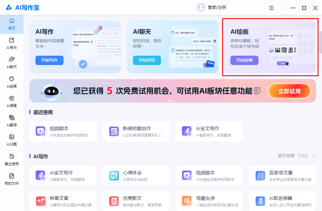 AI写做宝的利用界面很是曲不雅,大师若是对ai绘画感乐趣的话,